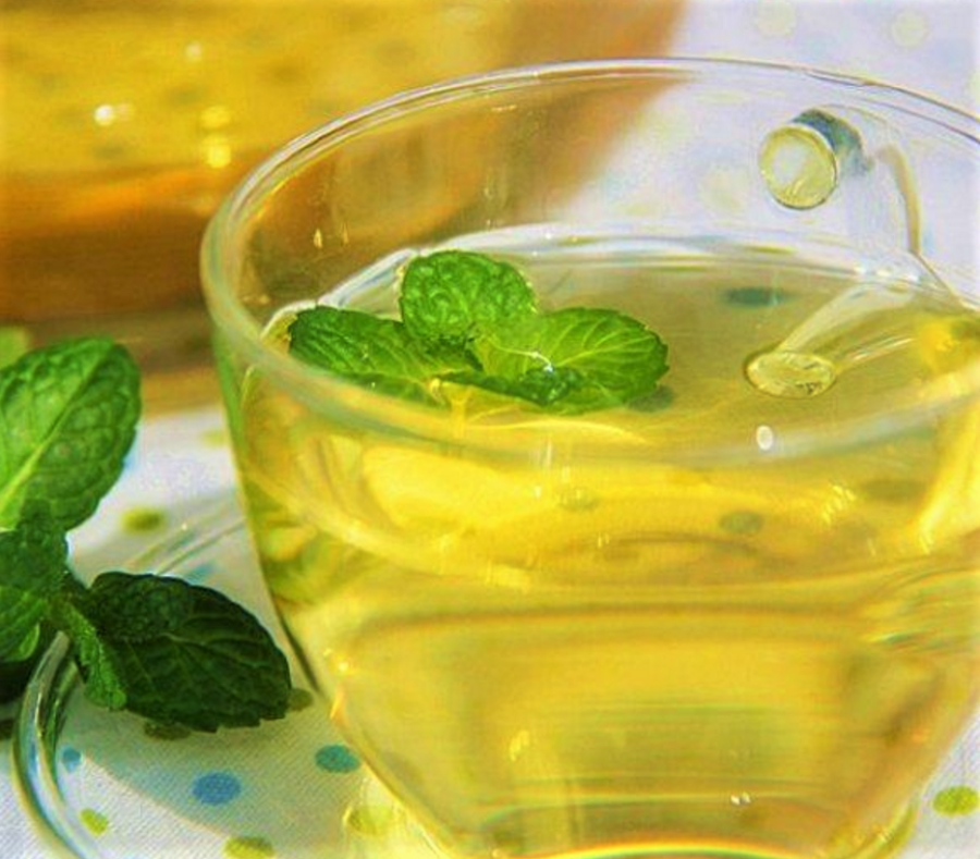 1. Put green tea leaves and mint sprigs in the teapot, steep with 300 ml of hot water for 10 minutes.