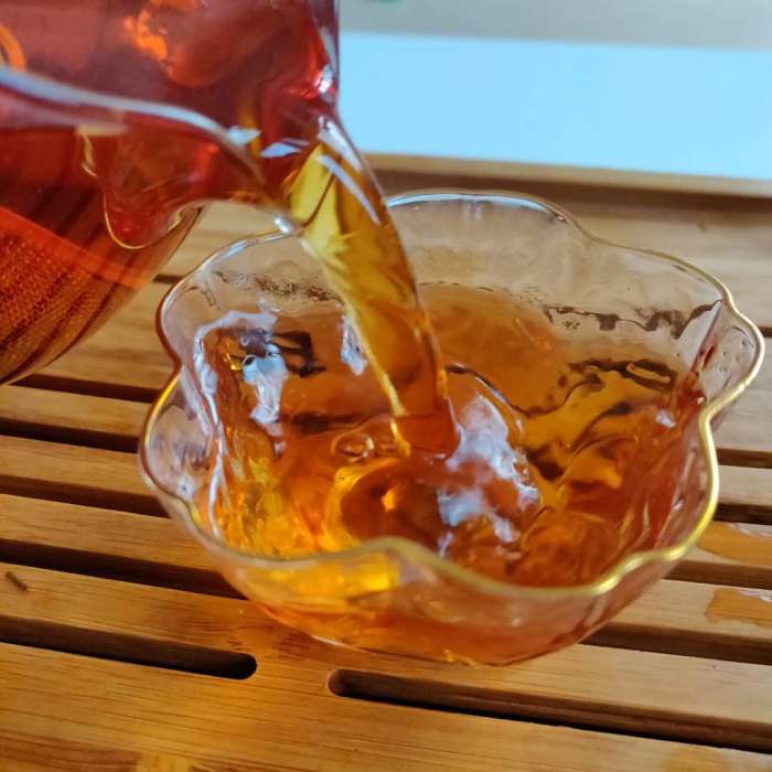The tea broth is somewhat thick and wonderfully smooth. The flavor is savory with caramel notes.