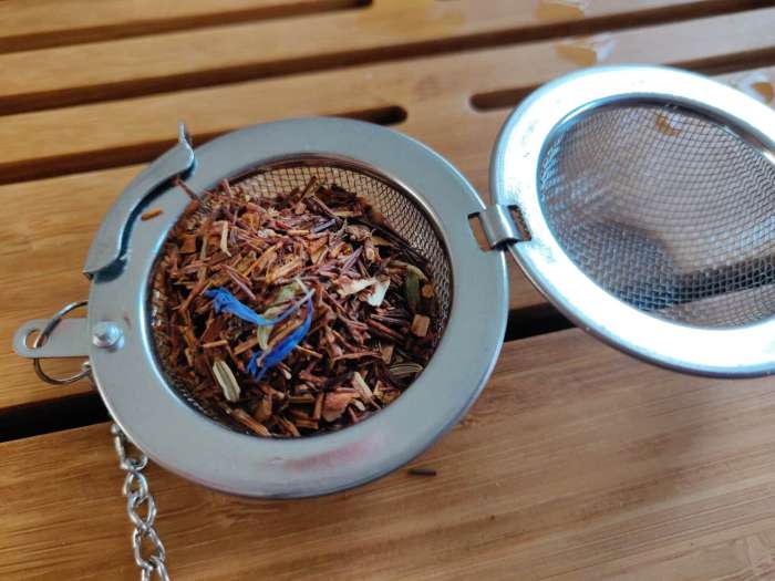 I decided to steep this tea with the tea infuser ball that was included in the box. This infuser appears to be of great quality, but the size may not allow all teas to expand well enough. As Rooibos doesn’t expand much, it seems to be great for this tea.