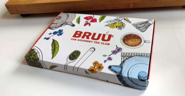 Recently we’ve received the Bruu tea club box. As you can see, the box directly made us happy with its colorful design. What’s also important to note is that the box fits easily through the mailbox. So you don’t have to be home to receive the box!