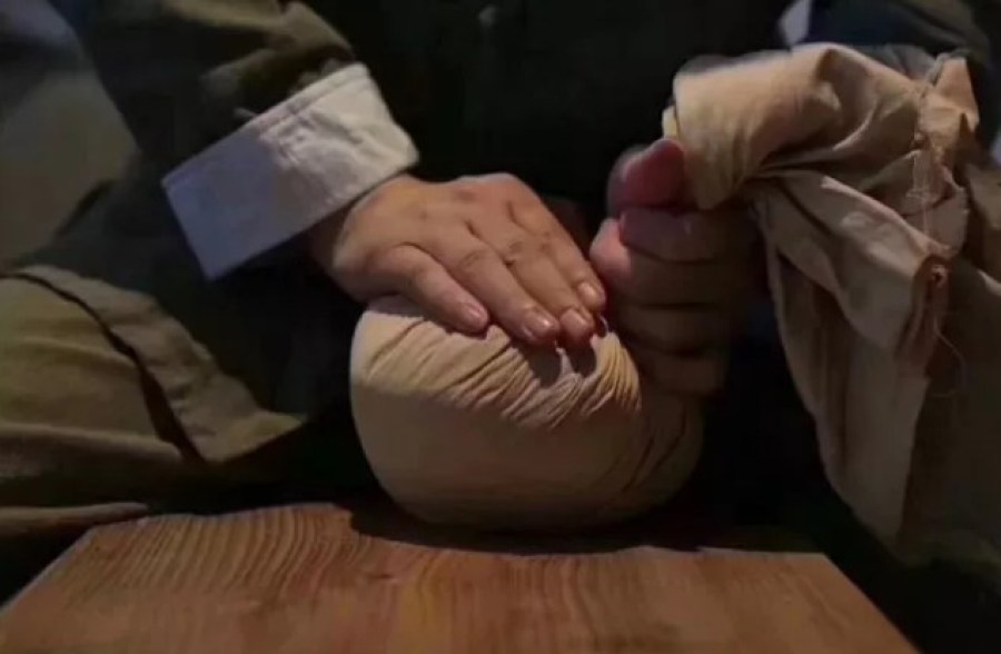 First roll the tea leaves into strip shapes. Then put them in a piece of a cloth and shape them into a ball. Use methods such as rolling, kneading, rubbing and pressing to form the tea leaves into Tie Guan Yin’s distinctive rounded shape. As it is very tiring work by hand, sometimes people use a rolling machine for this step.