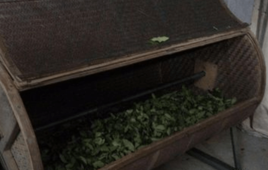 The purpose of this step is to make the grassy smell in the leaves fade, and make the leaves ferment evenly. The tea leaves are put in the tubular machine, and being tossed manually or by machine. During the tossing, the edges of the leaves collide with each other and are slightly damaged which cause oxidation.