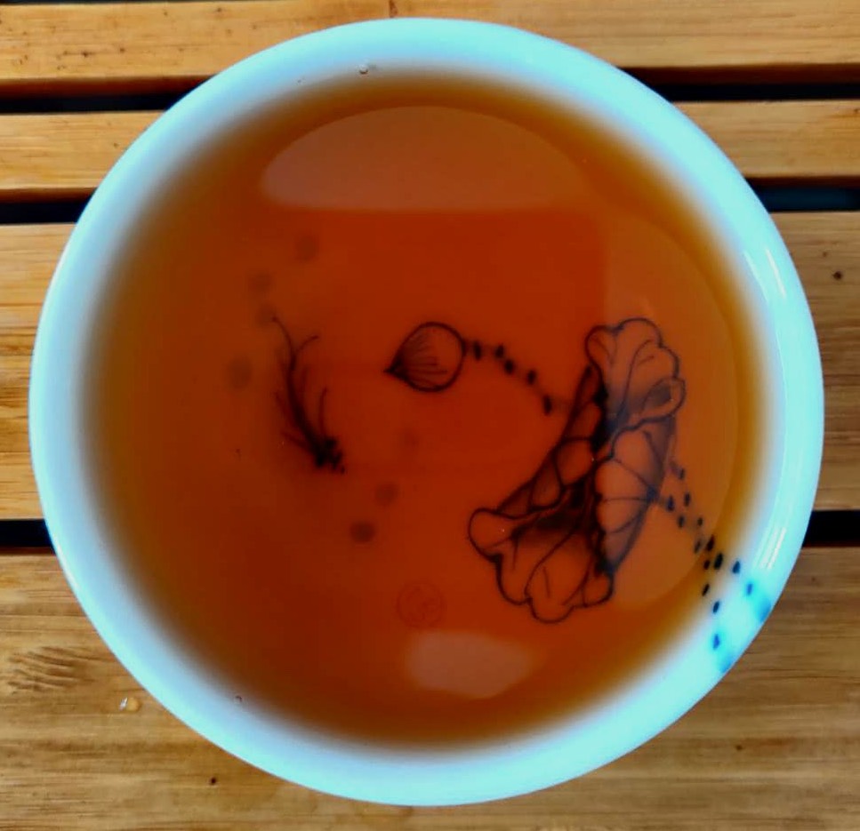 Now let’s get to the flavor. The first sip honestly completely blew me away. It has this note of ripe fruit like jujube, and osmanthus flowers. But those notes do not define this tea. What really pops out is this flavor of ‘golden flowers’ (Jin Hua) what you often find in An hua dark teas.