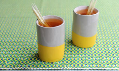 2 Tie the lemongrass in a knot and place in a cup with cinnamon and sweeteners if using.